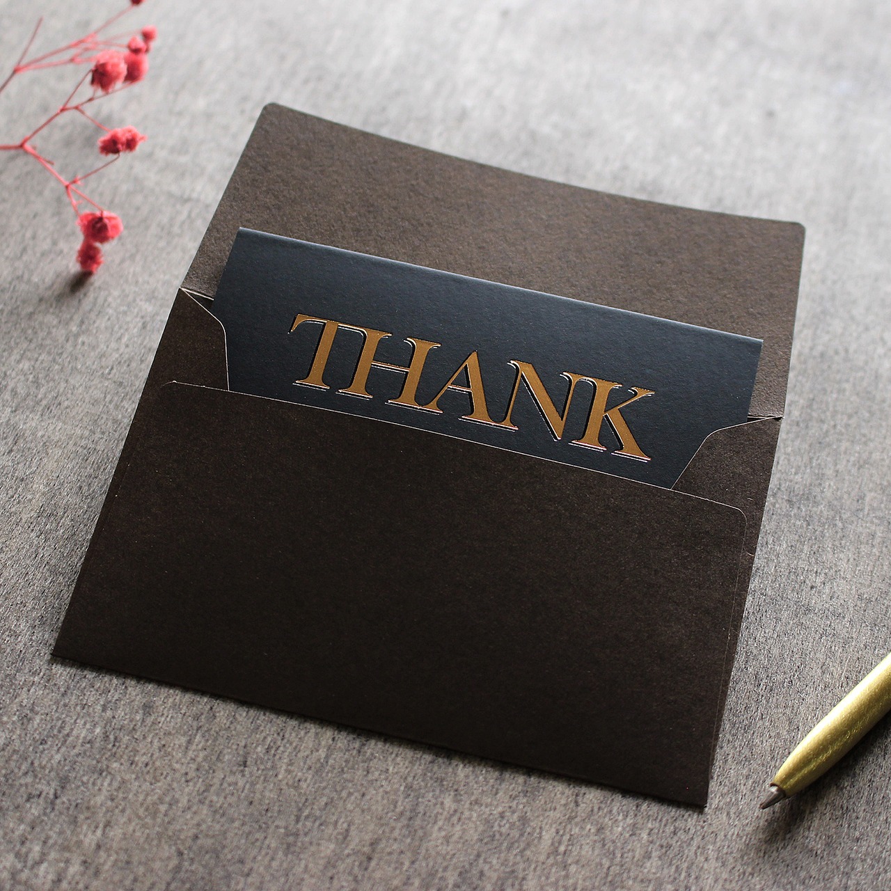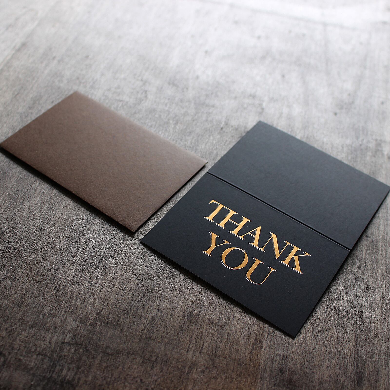 中央に大きく配置された「THANK YOU」の文字が印象的で、独特な紙質と金の箔押しが相まって、高級感のある一枚に仕上がっています。