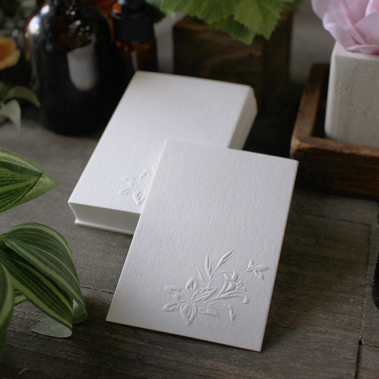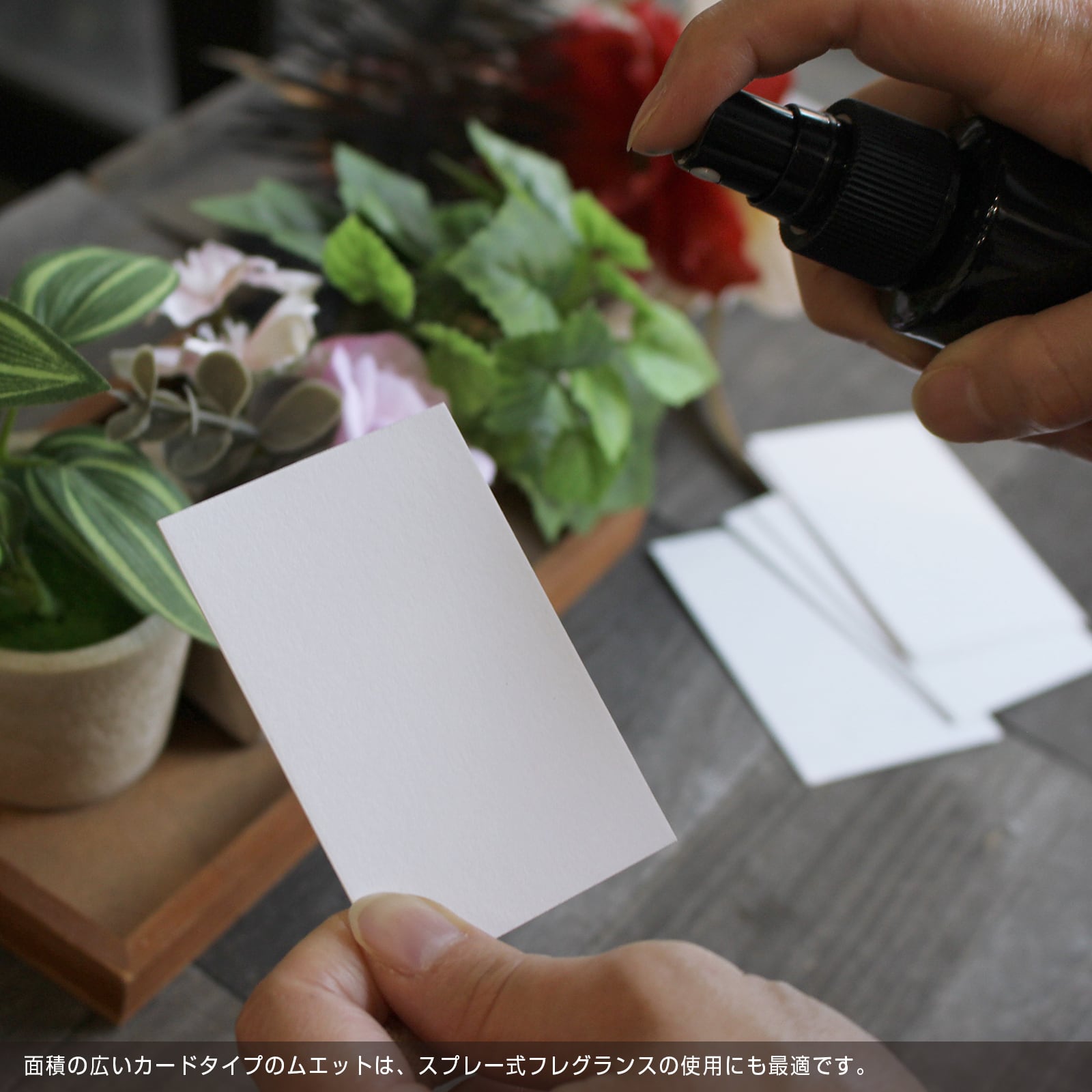 香料試験紙として専用で開発されたプロの調香師も愛用する日本製のムエット(香料試験紙)にエンボス加工で絵柄を入れたカードタイプのムエットです。